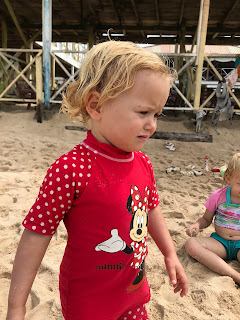 I bustled around from child to child getting off clothes to swimwear waiting to be immersed in the salty water of the Atlantic, taking pictures of Daso as she saw the expanse of water for the first time, and attempting the impossible task of keeping everything from becoming sandy.